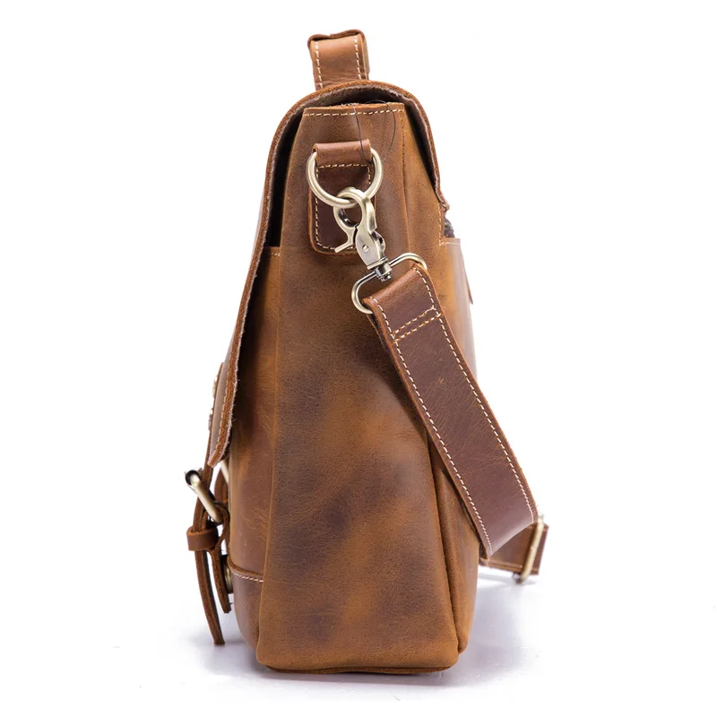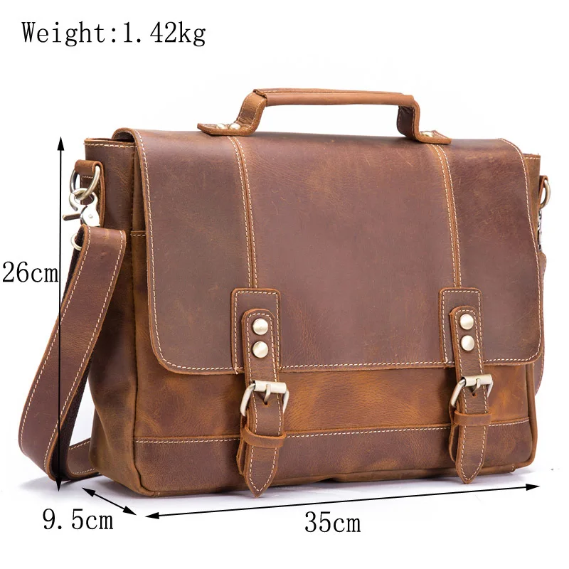 Free Shipping Messenger Bag for Men Genuine Leather 14 Inches Laptop Business Briefcase Shoulder Large Capacity T