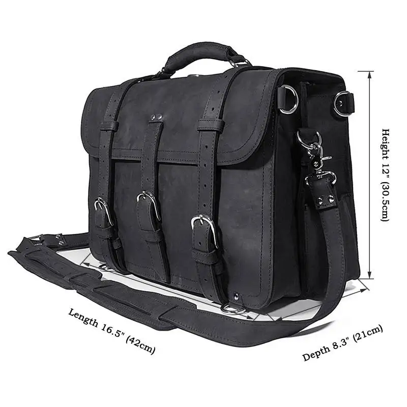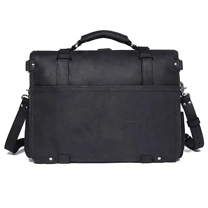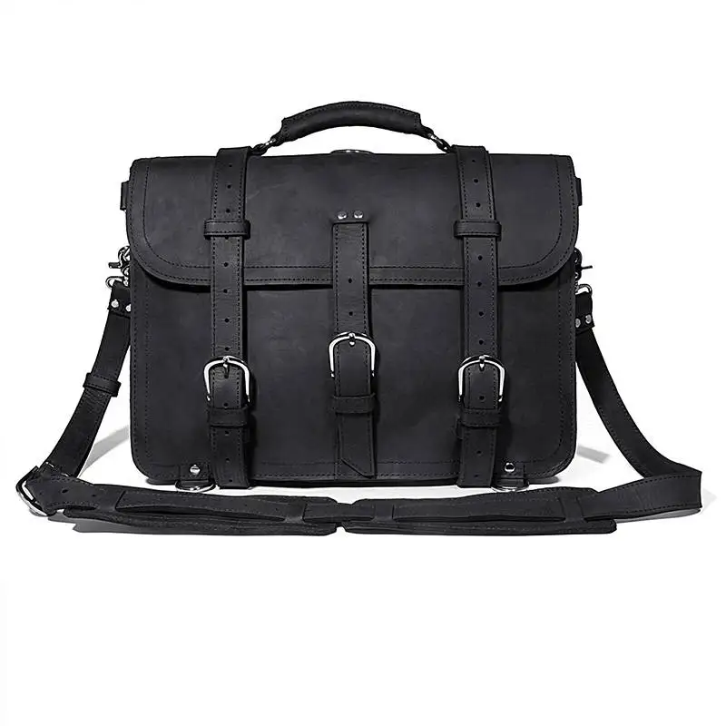 Free Shipping 17" Business Briefcase Black Handbag Laptop Bag Crazy Horse Leather Vintage Brand Designer Weekend