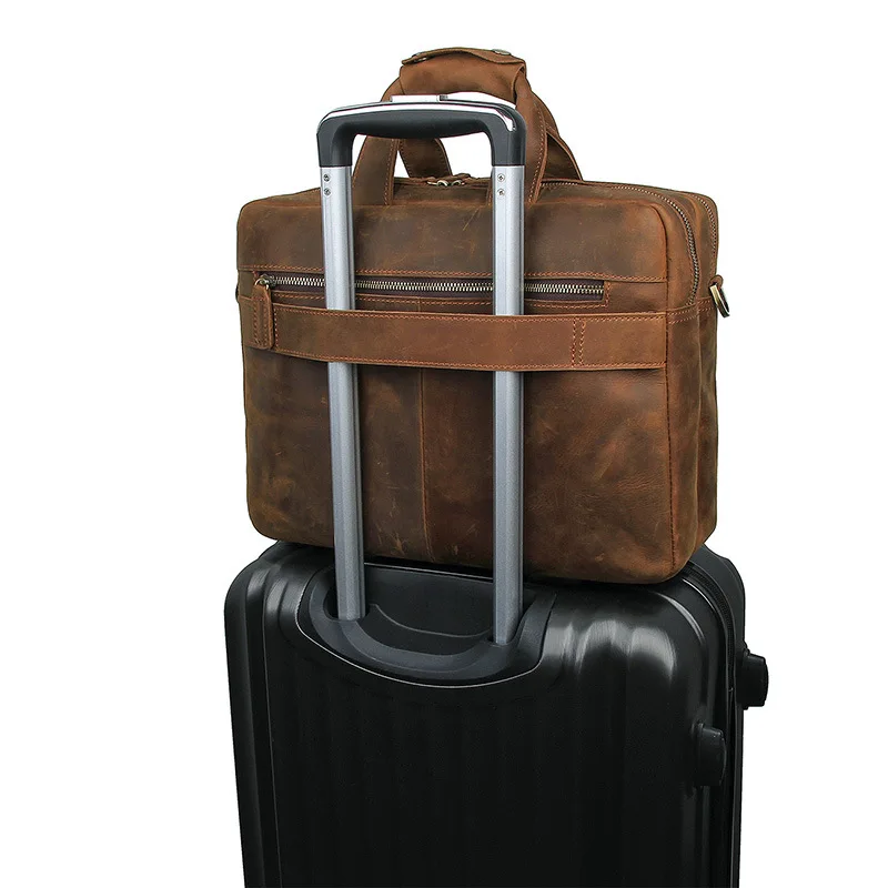 Limited Men's Laptop Vintage Travel Briefcase Cow Leather Business Travel 15" Large Capacity Weekend Crossb